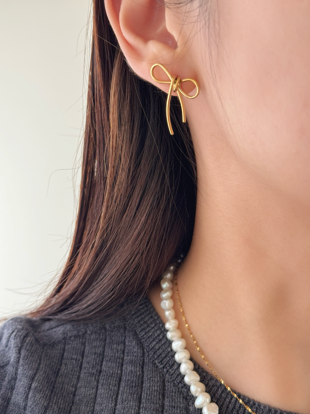【金属アレルギー対応】リボン スタッドピアス GIGI