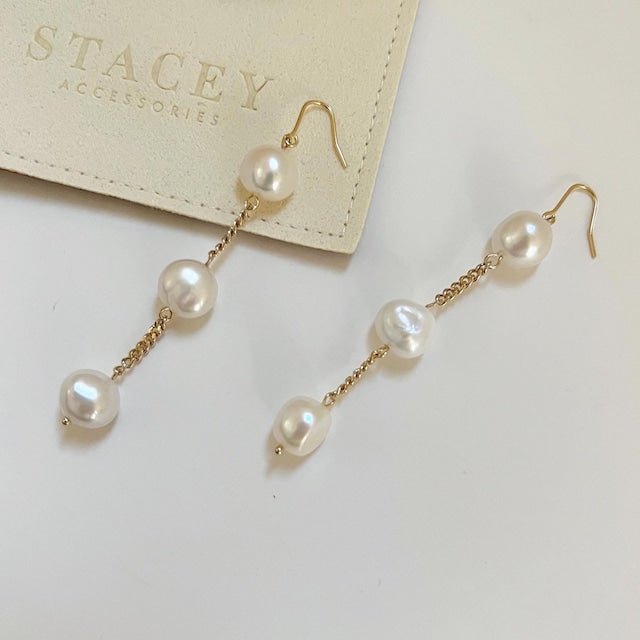 【金属アレルギー対応】淡水 バロック 小粒 パール ロング 揺れる ピアス Remi