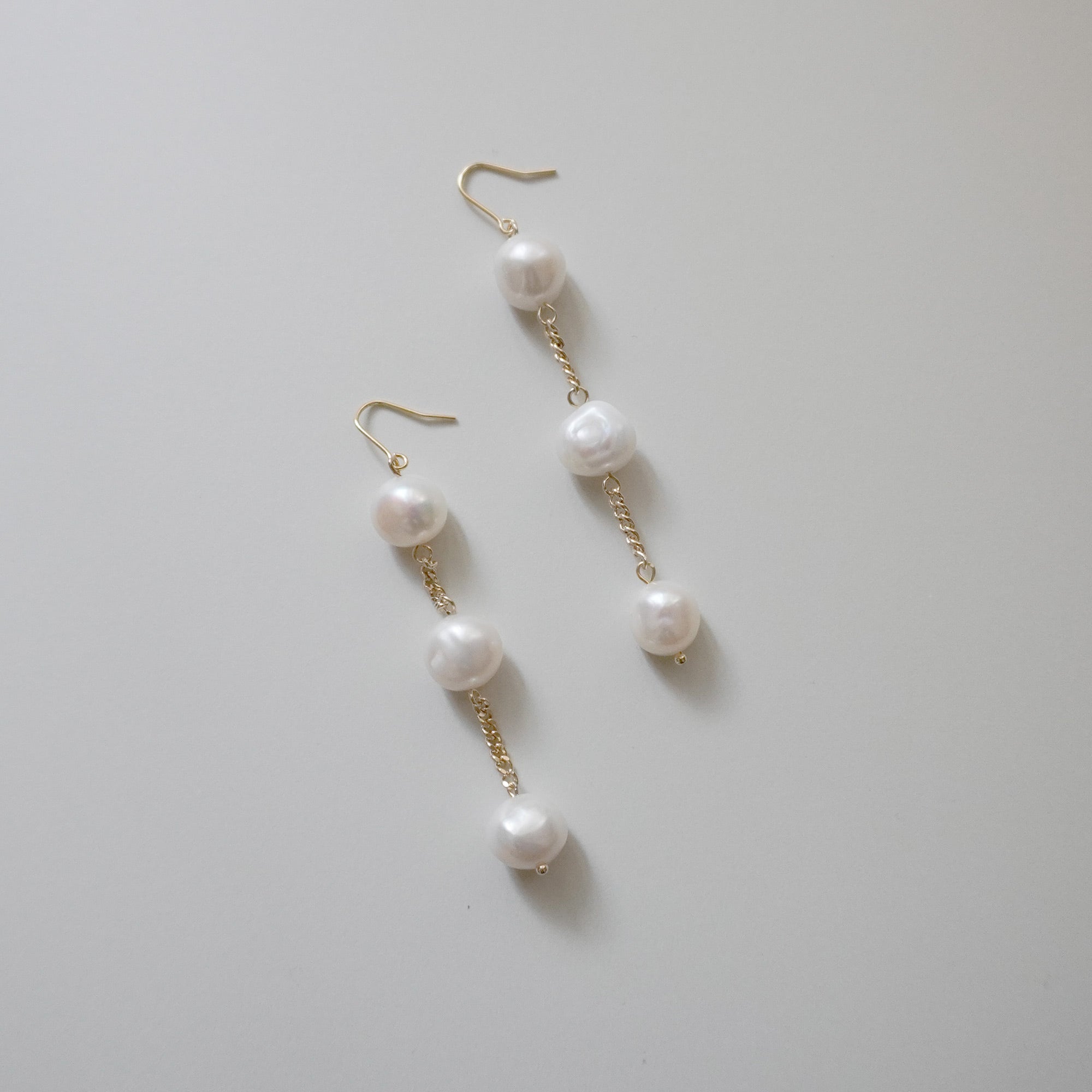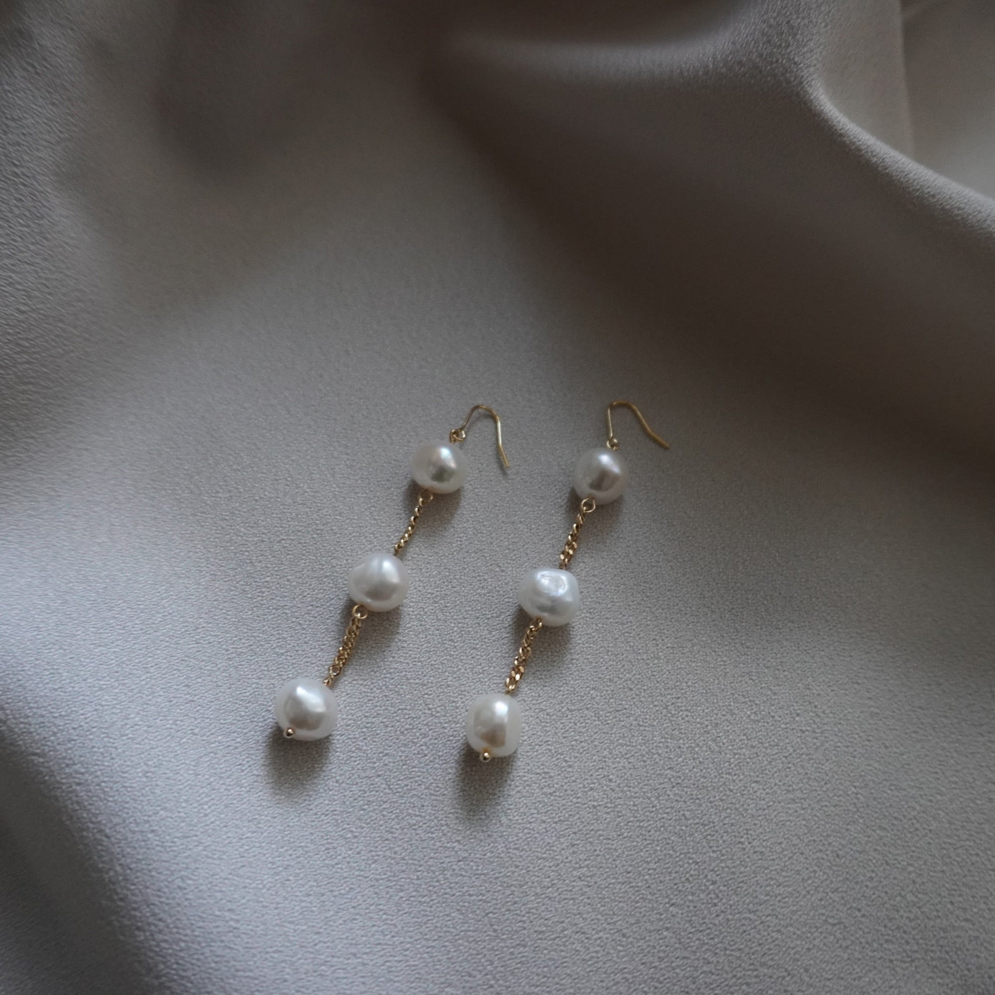 天然の淡水パールを使用した洗練された表情のピアス。小粒のパールが繊細に揺れ、美しい輝きを放ちます。Remiのバロックパールロングピアスは、エレガントでありながらもシンプルなデザインのため、様々なシーンにマッチします。デイリーに使うだけでなく、パーティーやイベントなど特別な日にもおすすめです。