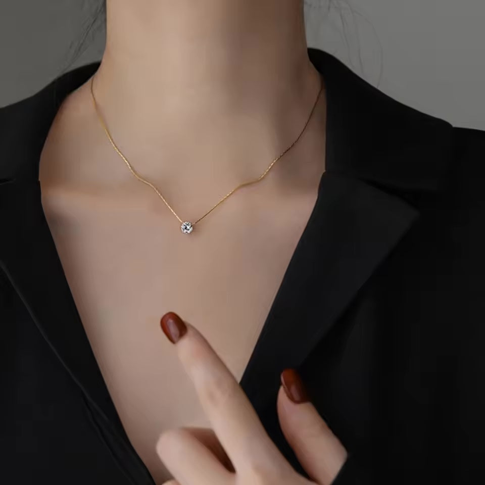 金属アレルギー対応のジルコニアネックレス。敏感な肌にも安心して着用いただけます。高品質なジルコニアが繊細な輝きを放ち、上品な印象を演出。日常使いから特別なシーンまで幅広く活躍し、快適さと美しさを両立したアクセサリーです。